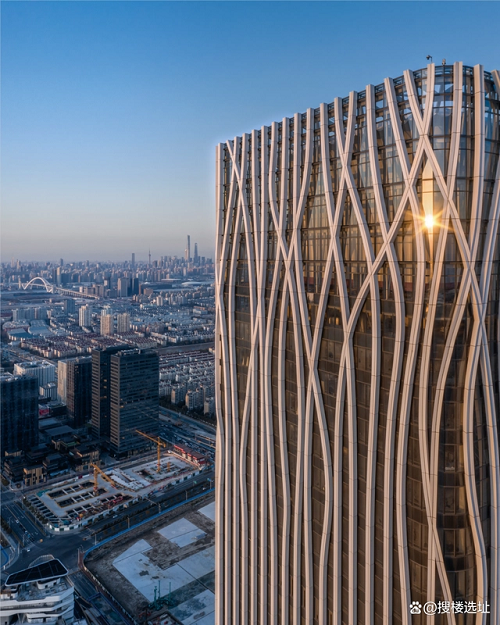 設(shè)計(jì)大師“樹”的設(shè)計(jì)理念突出體現(xiàn)在外立面幕墻。鋁幕線條從6層開始齊頭并進(jìn)直至215米處,之后線條開始不規(guī)則地“開枝散葉”,使得前灘中心看起來更為靈動(dòng)、生機(jī)勃勃。