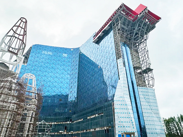 雅泰集團(tuán)承建上海臨港冰雪北區(qū)幕墻整體制作及建設(shè),本項(xiàng)目為菠蘿面異形設(shè)計(jì),充滿現(xiàn)代感的外立面,把冰雪世界的晶瑩閃耀充分展現(xiàn)。與之相匹配的鋁幕墻板的結(jié)構(gòu)復(fù)雜,加工難度較大,全異型、超大、超寬、超長鋁板,多數(shù)板長6-7米,且角度尖銳精度要求非常嚴(yán)格。面對高難度重點(diǎn)工程,雅泰集團(tuán)快速成立項(xiàng)目攻艱突擊隊(duì),選調(diào)管理、設(shè)計(jì)、加工精英,結(jié)合理解冰雪項(xiàng)目設(shè)計(jì)特點(diǎn),最大程度達(dá)成設(shè)計(jì)師初衷。加工團(tuán)隊(duì)對異型板件進(jìn)行優(yōu)化拆解,分件加工,再進(jìn)行一體化工廠組裝集成。同時集團(tuán)擁有行業(yè)內(nèi)體量、規(guī)模均在前列,全長700米的進(jìn)口先進(jìn)噴涂設(shè)備,充分滿足超大、超長、超寬鋁板的氟碳漆面噴涂完成。